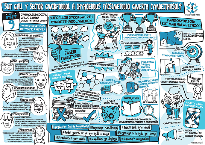 Trefnwyd y digwyddiad hwn mewn partneriaeth â Grŵp Llywio Fforwm Gwerth Cymdeithasol Gogledd Cymru, a sefydlwyd mewn ymateb i Adran 16 o Ddeddf Gwasanaethau Cymdeithasol a Llesiant (Cymru) 2014. Mae’r ddeddf hon yn gosod dyletswydd ar awdurdodau lleol (gyda phartneriaid) i hyrwyddo datblygiad mudiadau dielw i ddarparu gwasanaethau gofal a chymorth a gwasanaethau ataliol.